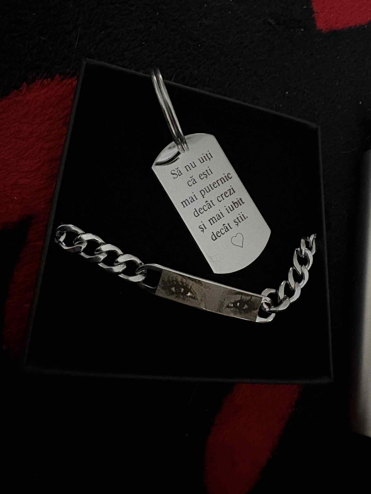 O simplă privire poate transmite mai mult decât cuvintele. Această brățară gravată cu ochii persoanei iubite, ai copilului sau ai unei persoane speciale devine un simbol al legăturii unice dintre voi.