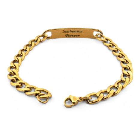 O brățară poate fi doar un accesoriu. Sau poate fi un mesaj de suflet. Alege această brățară personalizată pentru bărbați, cu finisaj auriu elegant și plăcuță gravată cu un text cu însemnătate.