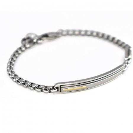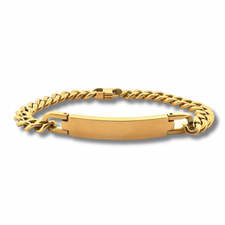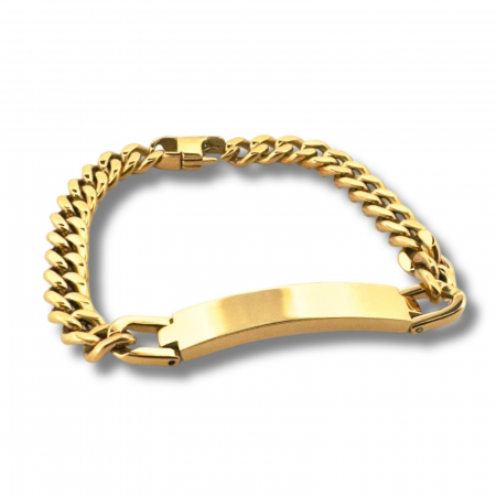 Brățară Bărbați cu Plăcuță Personalizată - Oțel Inoxidabil Auriu - Gravură Laser cu Garanție pe Viață + CADOU