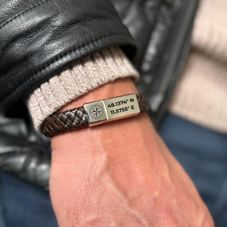 Această brățară se personalizează cu text la alegere – de la un simplu „Te iubesc” până la coordonate, date importante sau simboluri.