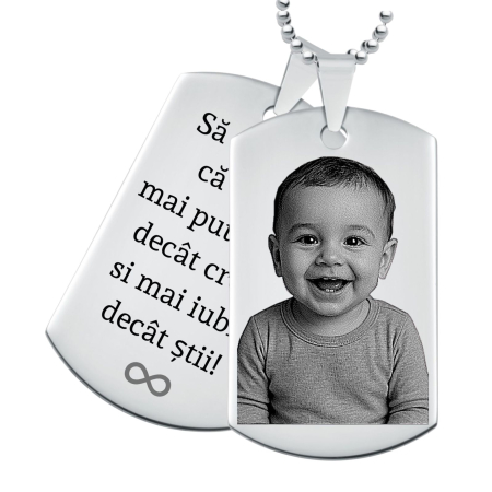 • Plăcuță gravabilă: 40 × 8 mm – față personalizabilă cu text