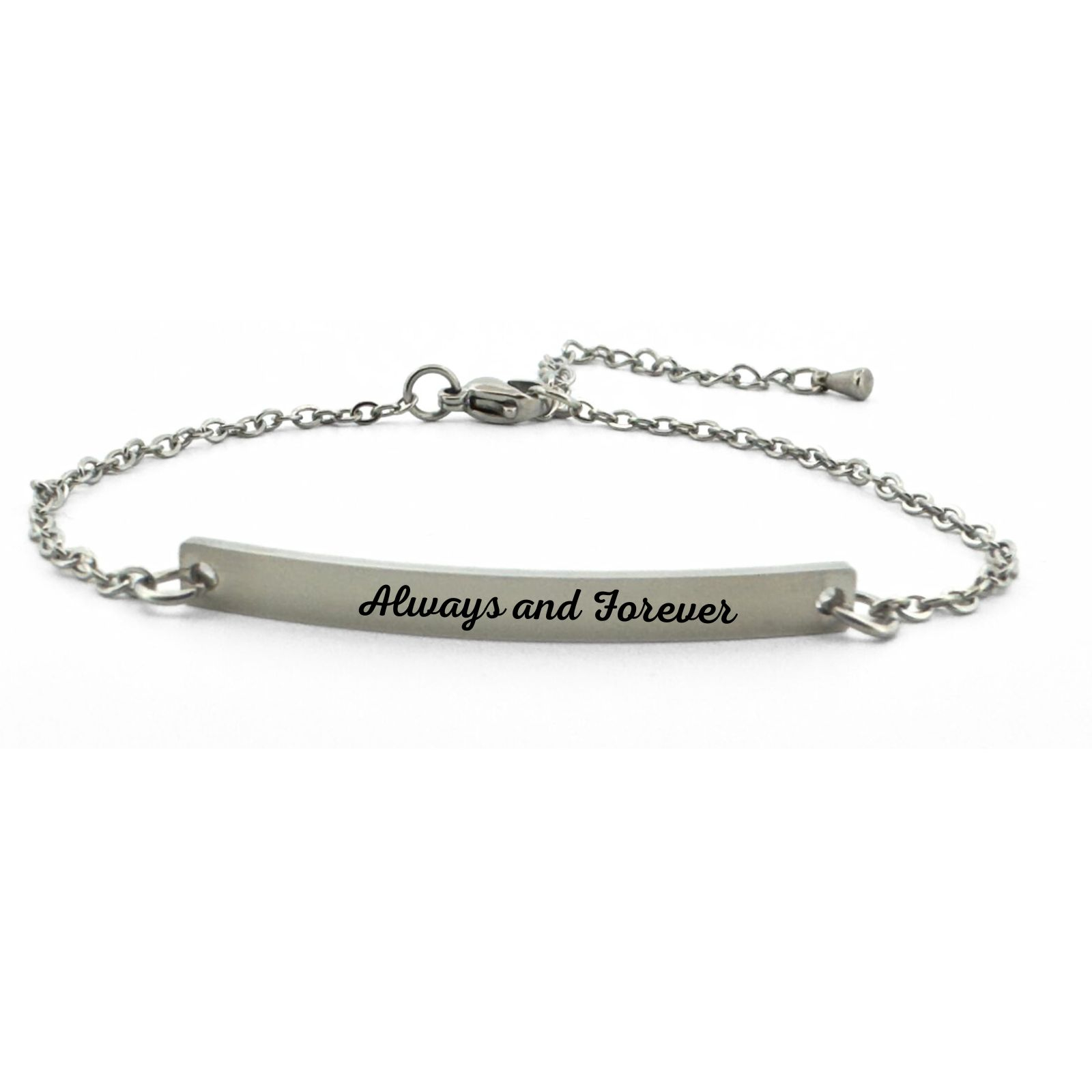 Brățara cu plăcuță personalizată este simbolul feminității și al eleganței discrete. Realizată din oțel inoxidabil 316L premium, nu se oxidează, nu își schimbă culoarea și este potrivită chiar și pentru pielea sensibilă. Gravura laser, realizată cu precizie, are o nuanță neagră intensă, fiind clar vizibilă din orice unghi și rezistentă permanent – indiferent de uzură.