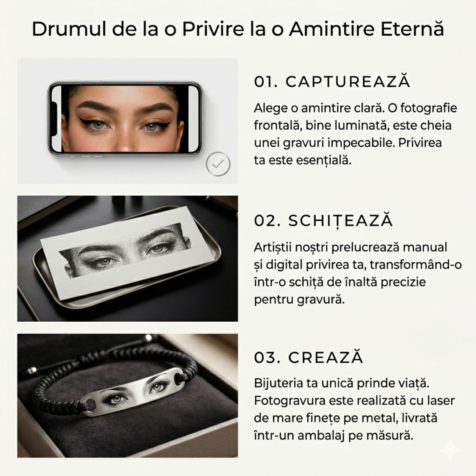 Uneori, cele mai puternice lucruri sunt cele simple. Această brățară personalizată cu ochii iubitei este un simbol discret, dar plin de emoție – perfect pentru a o avea mereu aproape, oriunde mergi.