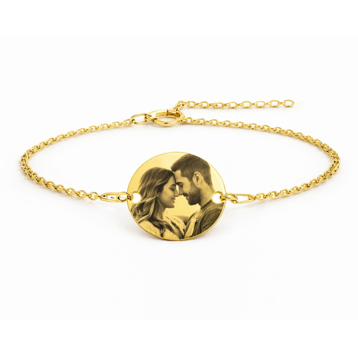 O bijuterie delicată care îmbină rafinamentul aurului cu emoția unei amintiri. Această brățară personalizată este realizată din inox premium placat cu aur 18K și gravată cu fotografia unei persoane dragi, transformând fiecare detaliu într-o poveste purtată zi de zi. Este mai mult decât un accesoriu – este o legătură, o emoție, un simbol personal.