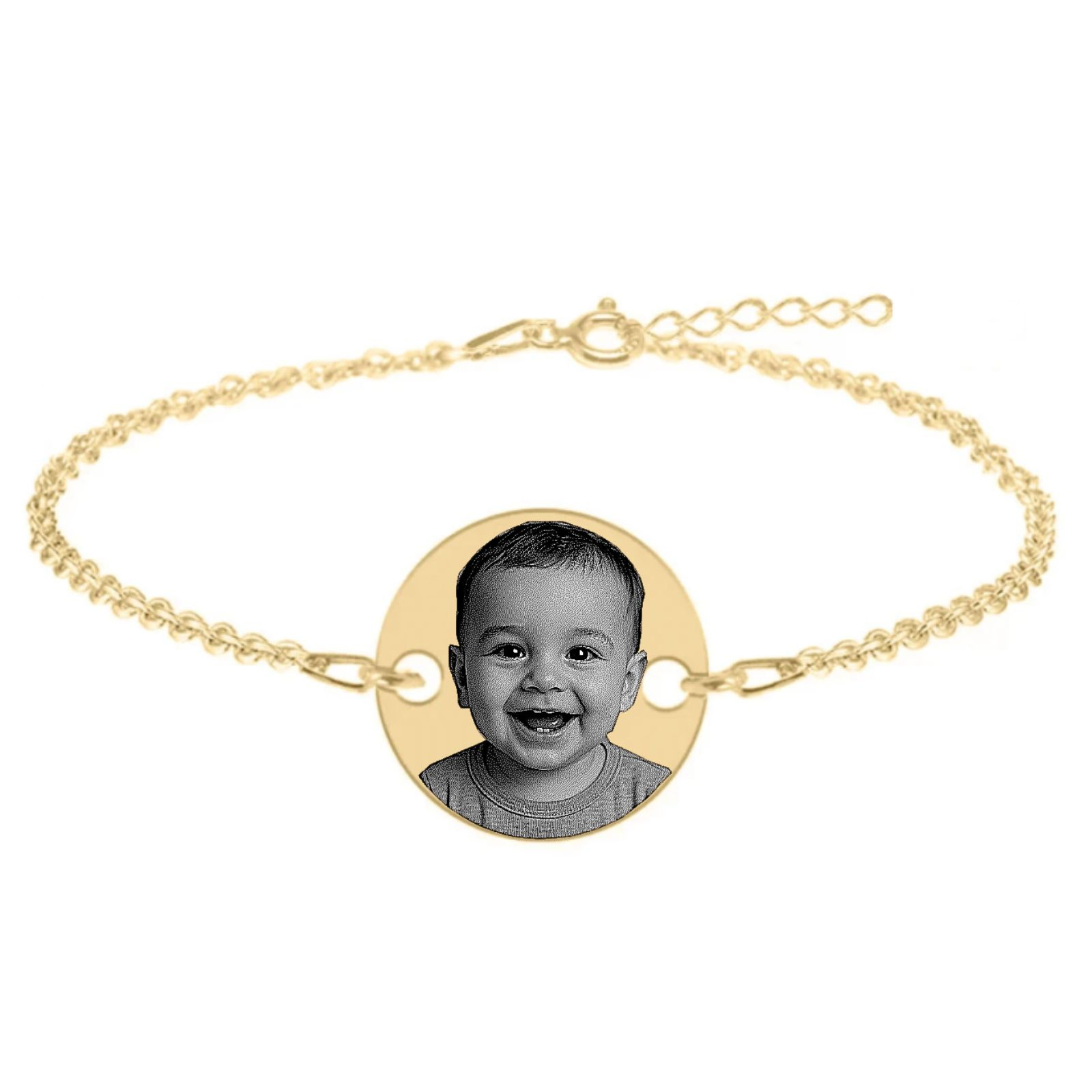 Această brățară rafinată îmbină eleganța culorii aurie cu puterea simbolică a gravurii personalizate. Poți adăuga pe bănuțul de 20 mm fotografia unei persoane dragi, a unui moment unic sau un mesaj care poartă o amintire specială.