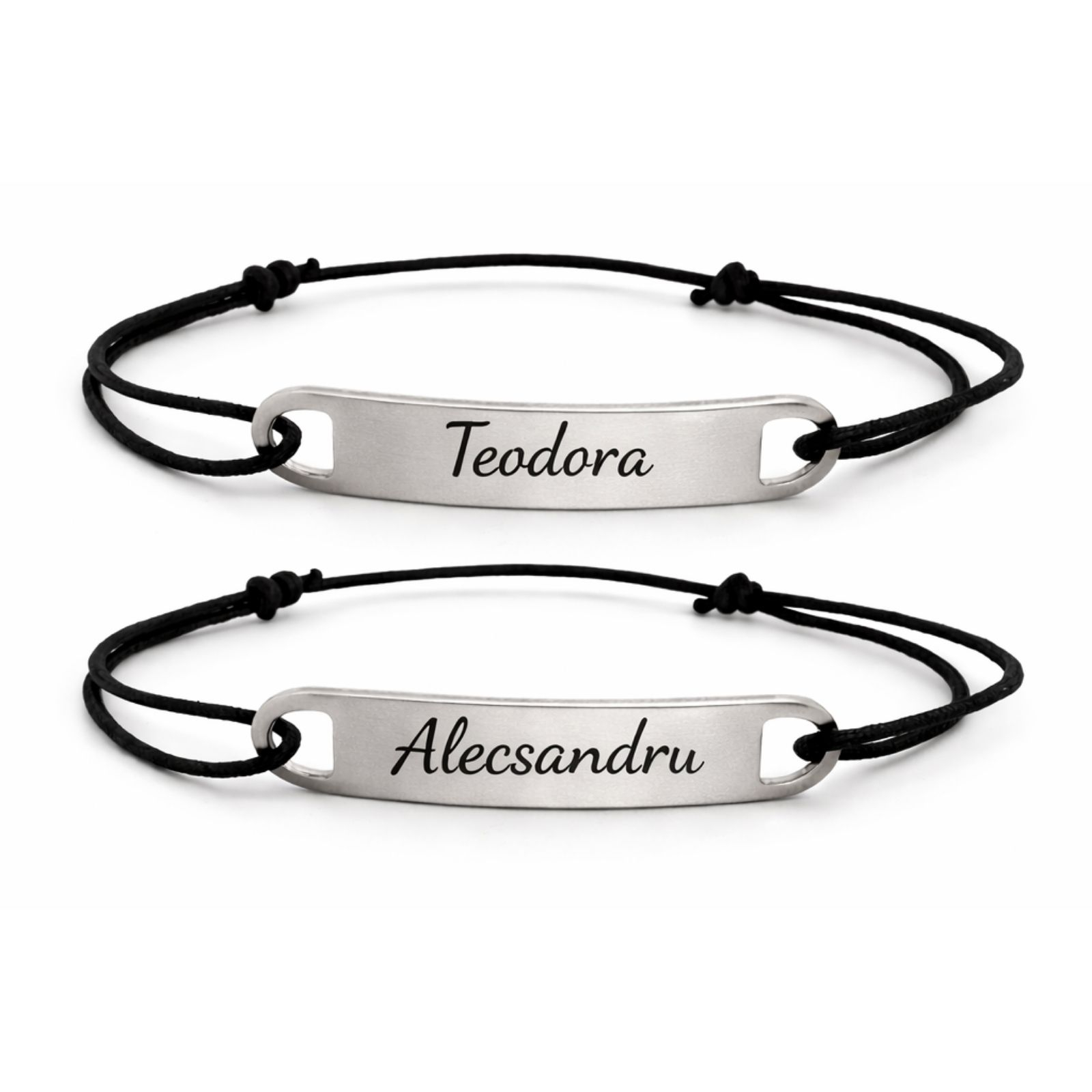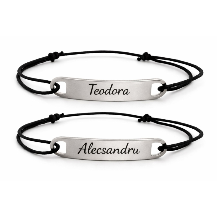 Fiecare brățară este gravată cu numele vostru, transformând un accesoriu minimalist într-un simbol al relației voastre.