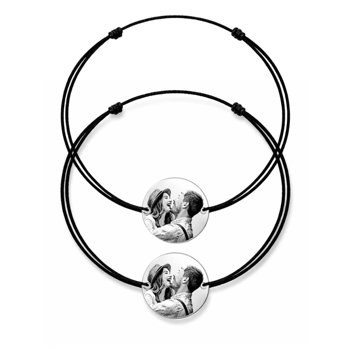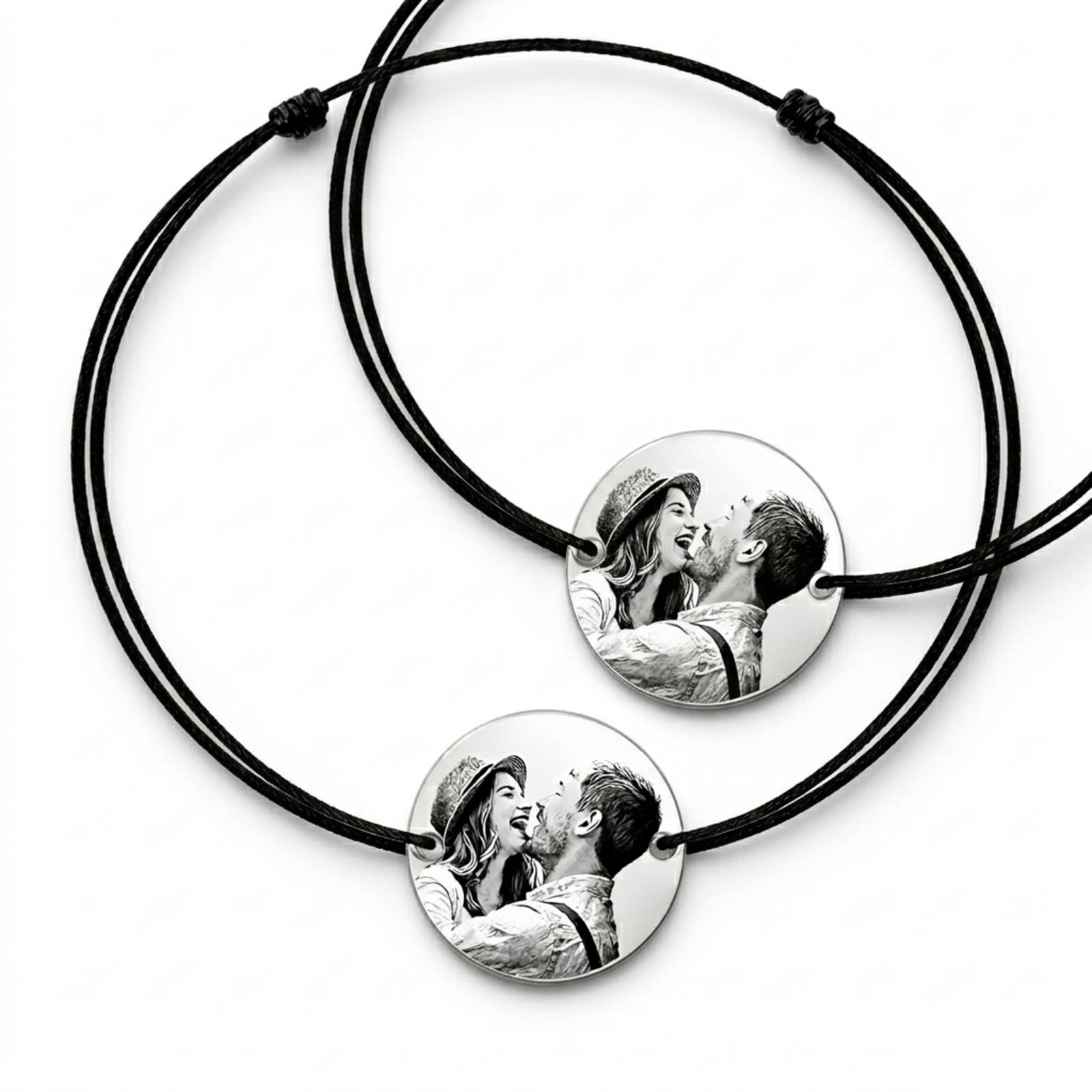 Brățări Cuplu Personalizate cu Poză și Text – Bănuț Argint 925, Șnur Reglabil Simplu + CADOU