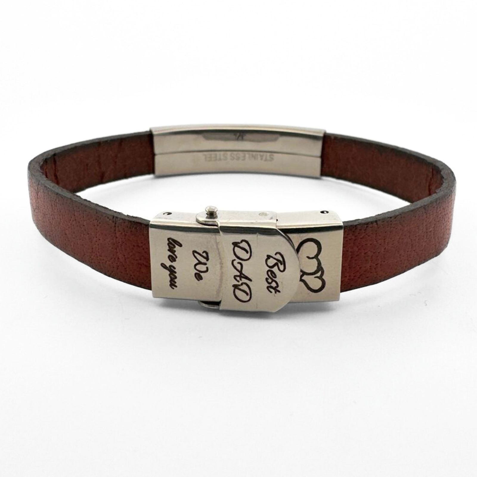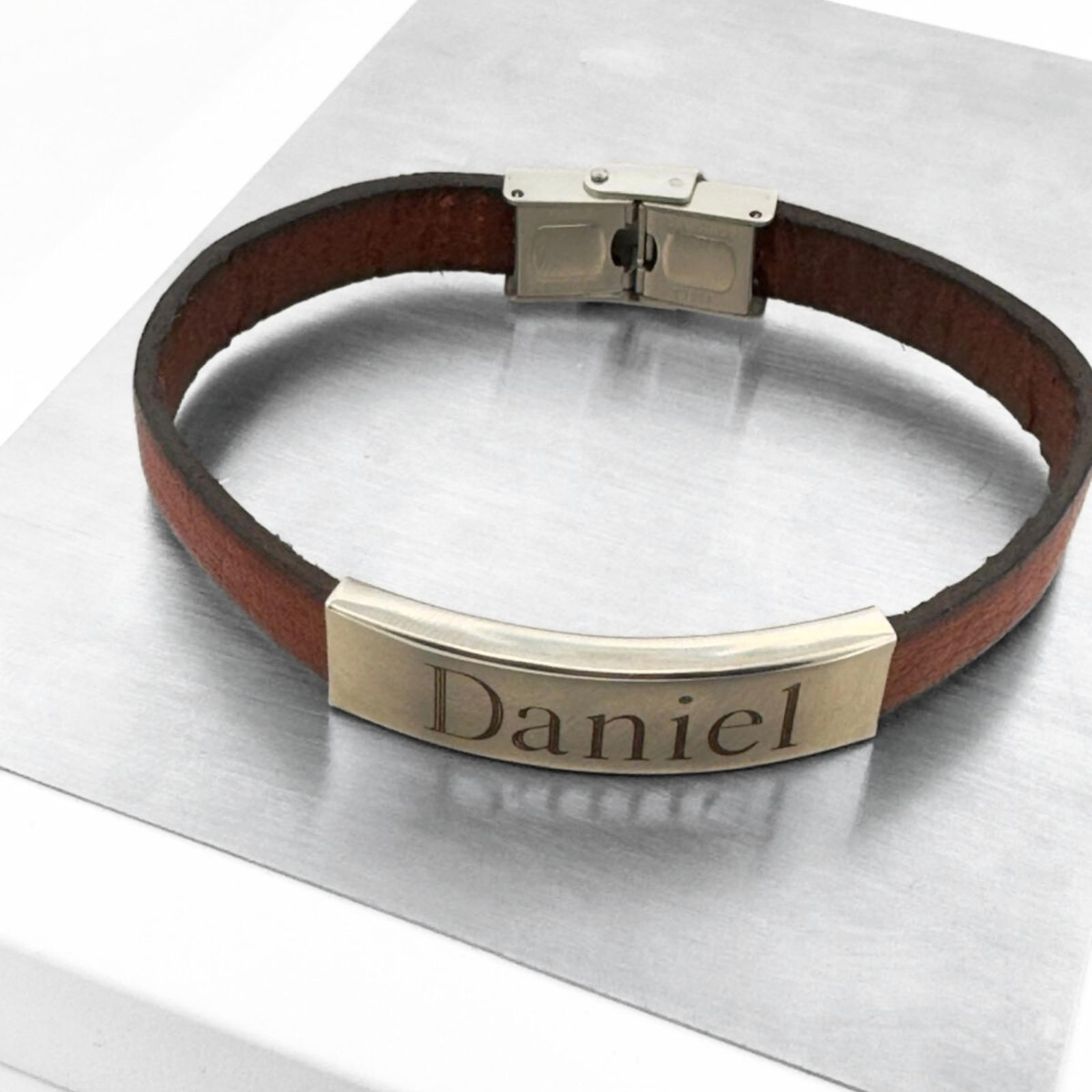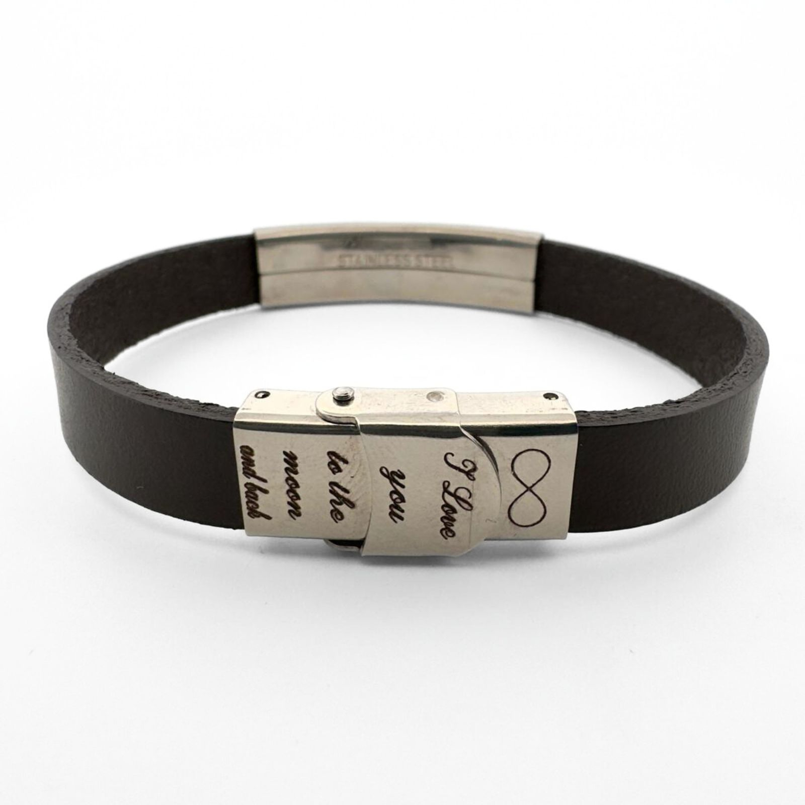 Această brățară din piele naturală maro combină eleganța discretă cu durabilitatea inoxului, oferind un look masculin, rafinat și versatil. Poate fi personalizată cu nume, coordonate, date importante, citate sau simboluri, devenind astfel un cadou memorabil pentru orice ocazie.