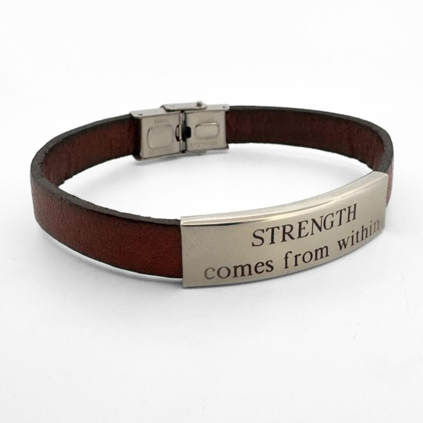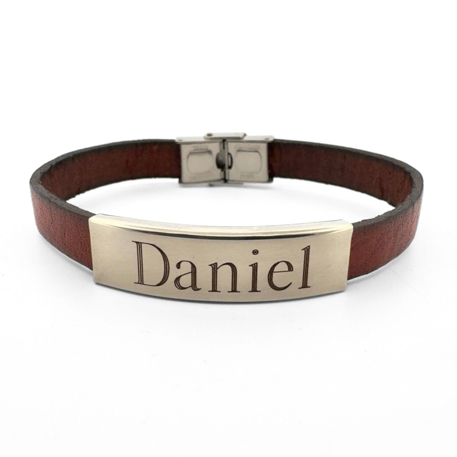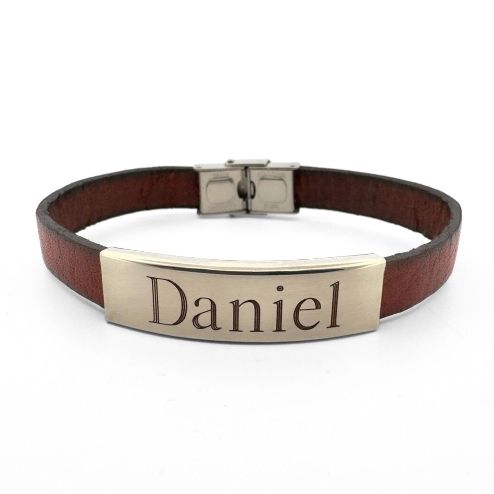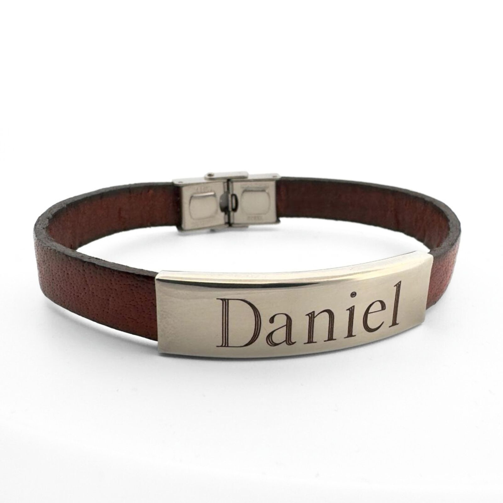 Această brățară din piele naturală maro combină eleganța discretă cu durabilitatea inoxului, oferind un look masculin, rafinat și versatil. Poate fi personalizată cu nume, coordonate, date importante, citate sau simboluri, devenind astfel un cadou memorabil pentru orice ocazie.