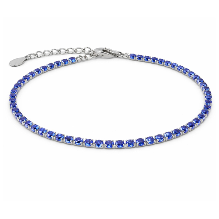 Eleganță pură, într-o formă minimalistă și modernă. Brățara Tennis cu cristale zirconiu albastru de 3 mm este un accesoriu rafinat, potrivit atât pentru femei, cât și pentru bărbați, care adaugă un plus de stil oricărei ținute.