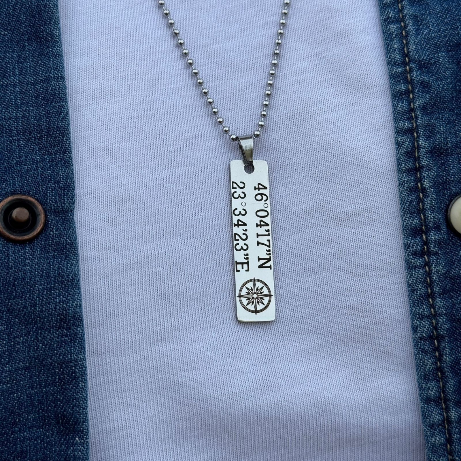 • Lanț cu plăcuță personalizată text, plăcuță de 40x10 mm, lanț tip biluțe de 2 mm, disponibil în lungimi de 55 cm, 60 cm sau 65 cm;