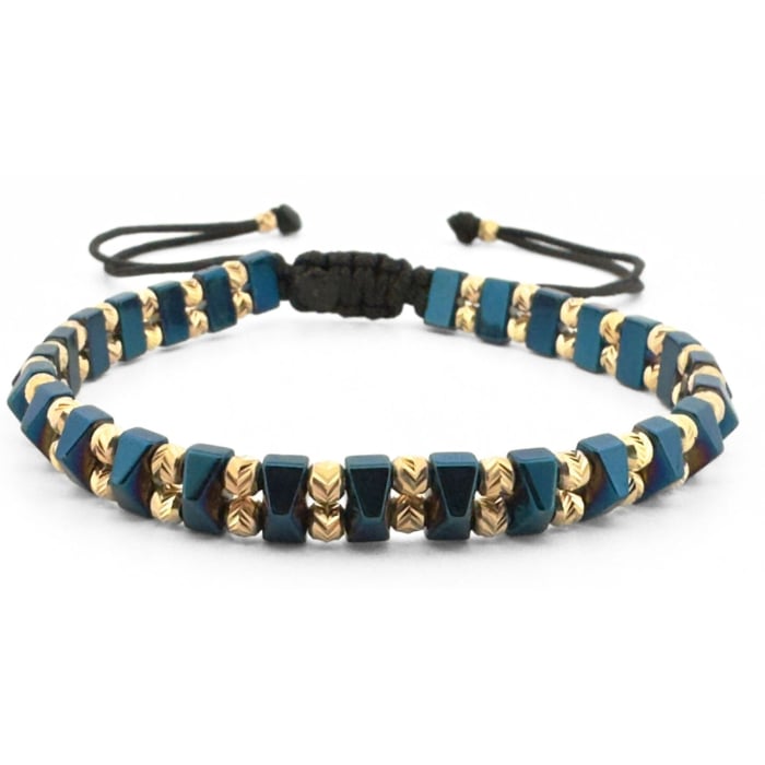 Brățară cu 10 Biluțe de aur 14K și Mărgele Miyuki Negru Lucios, Șnur Reglabil