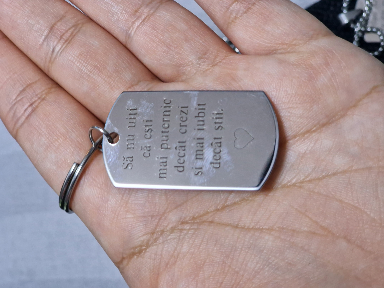 Acest lanț Army personalizat cu poză și text, cu lanț Box de 2.5 mm, este alegerea ideală pentru cei care preferă un design curat și elegant. Transformă o fotografie importantă într-un accesoriu discret, dar cu impact emoțional puternic.