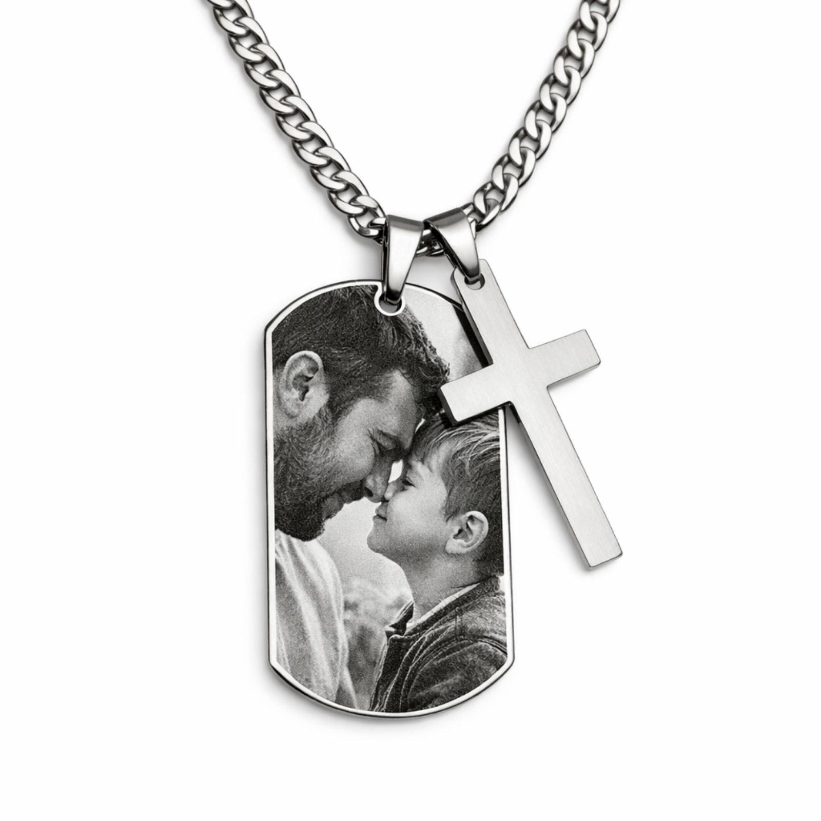 Acest colier cu cruce și plăcuță Army personalizată îmbină două lucruri esențiale: credința și amintirile. Gravează o fotografie sau un mesaj pe plăcuță și poartă zilnic ceva cu adevărat important pentru tine.